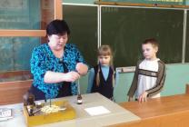 А на этой недели проходила предметная неделя по химии. В начальной школе прошел кл. час. "Что изучает химия?". Провела урок знакомства с химией Н. А.Павлова, а самые активные ребята показали опыты вместе с Надеждой Алексеевной.