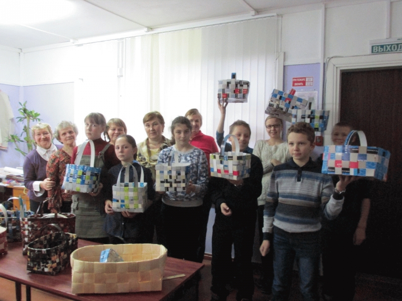 С помощью наставников ученики 6-го класса Юшкозерской школы совершенствовали свои навыки и умения , полученные на предыдущем мастер-классе по плетению корзины. Ученики и мастера остались вполне довольны результатами совместной работы.