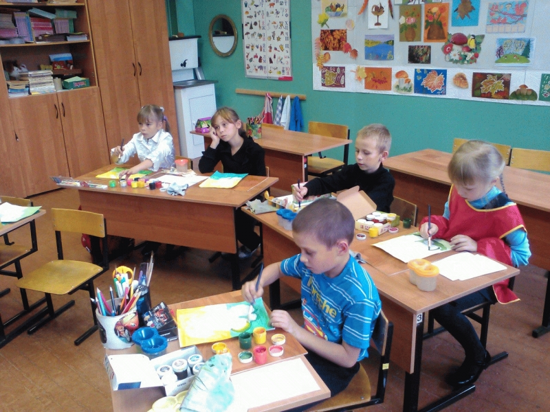 В школе работает кружок "Волшебная кисть", руководит его работой талантливый педагог, Татьяна Михайловна Васильева.