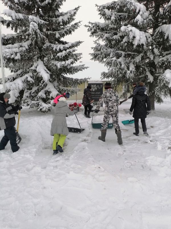 В этом году зима очень снежная, и наши ребята, взяли на себя ответственность за обелиск.